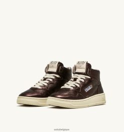 baskets medalist mid en cuir et daim marron cuivré et rouge femmes belgique Autry N0XLH0234