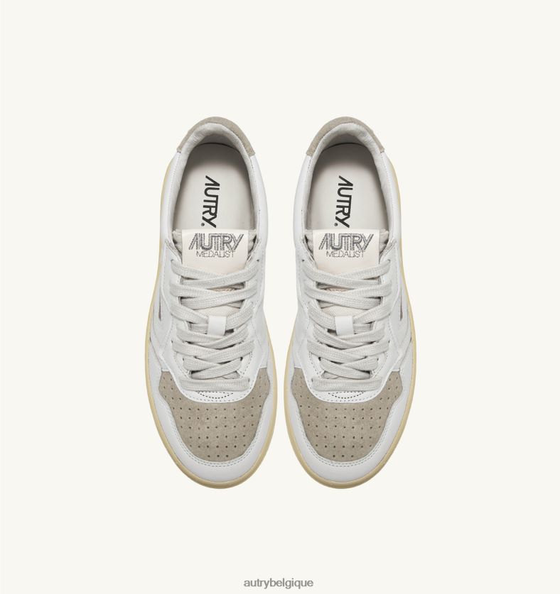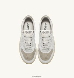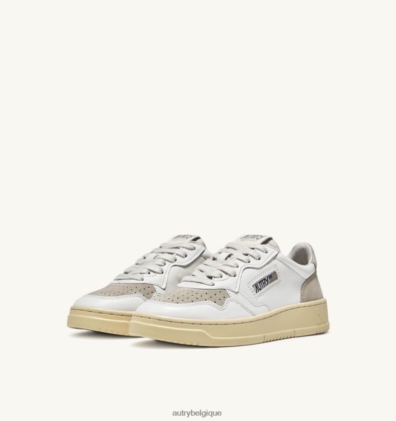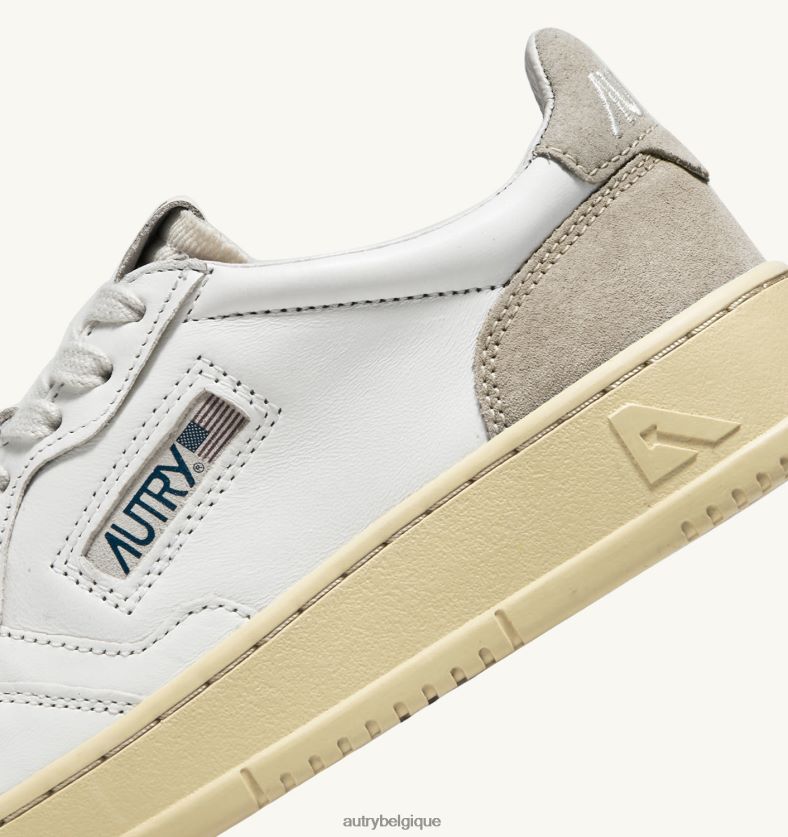 baskets basses médaillées en daim e pelle bianco e sand Hommes belgique Autry N0XLH061