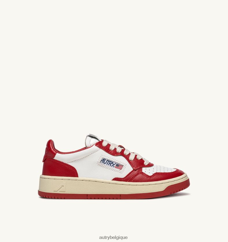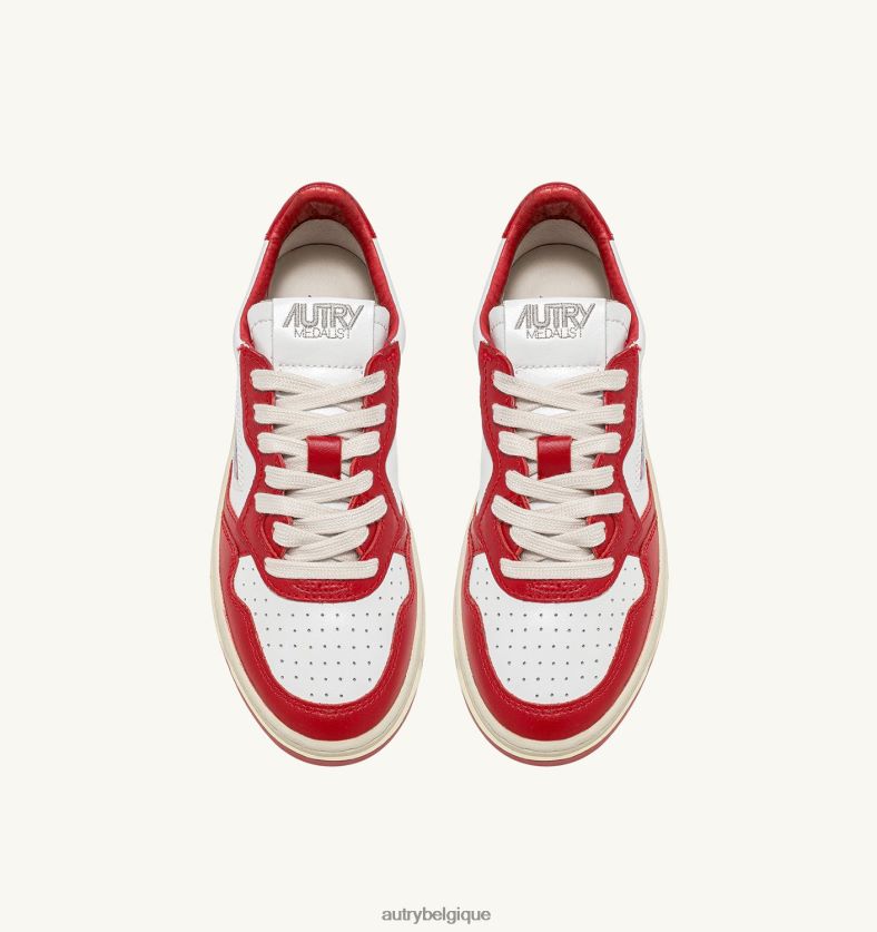 baskets basses medalist bicolores en cuir blanc et rouge femmes belgique Autry N0XLH0176