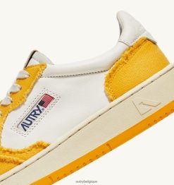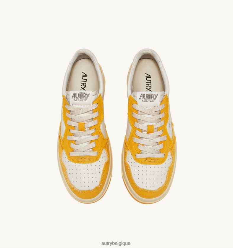 baskets basses medalist bicolores en cuir de chèvre souple et toile effilochée blanc et mangue Hommes belgique Autry N0XLH048