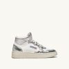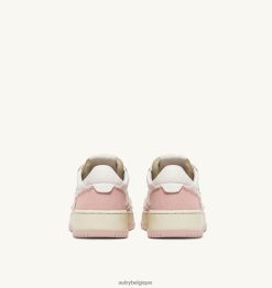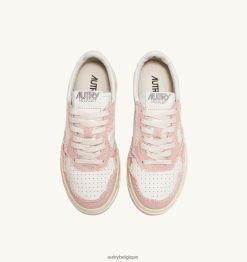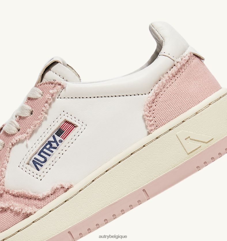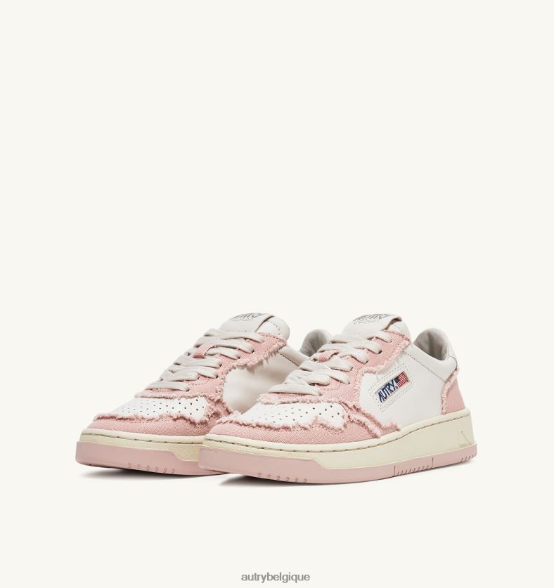 baskets basses medalist bicolores en cuir de chèvre souple et toile effilochée blanc et rose poudré femmes belgique Autry N0XLH0239