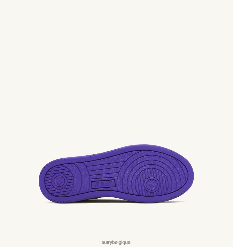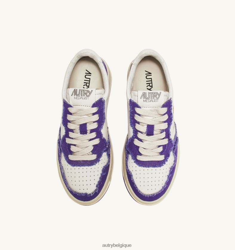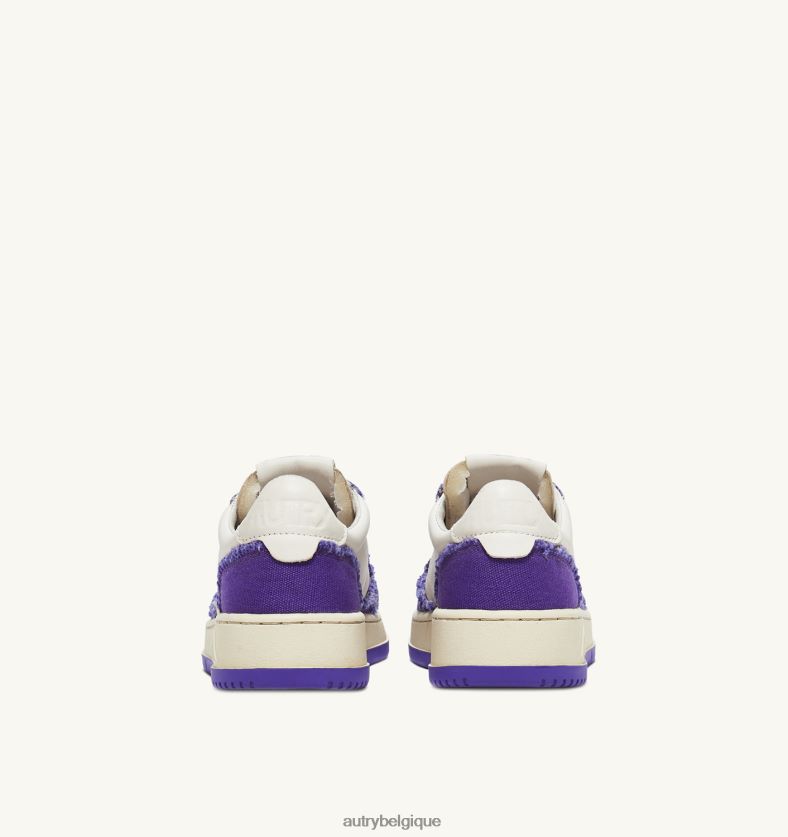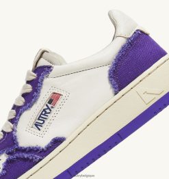 baskets basses medalist bicolores en cuir de chèvre souple et toile effilochée blanc et violet femmes belgique Autry N0XLH0241