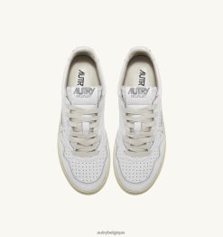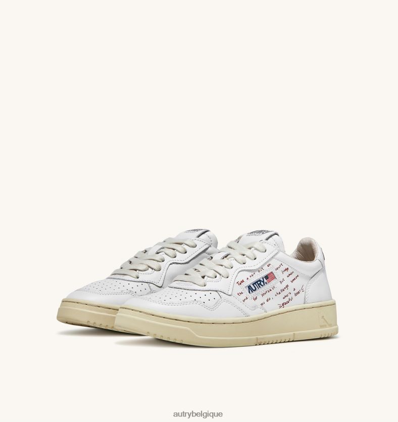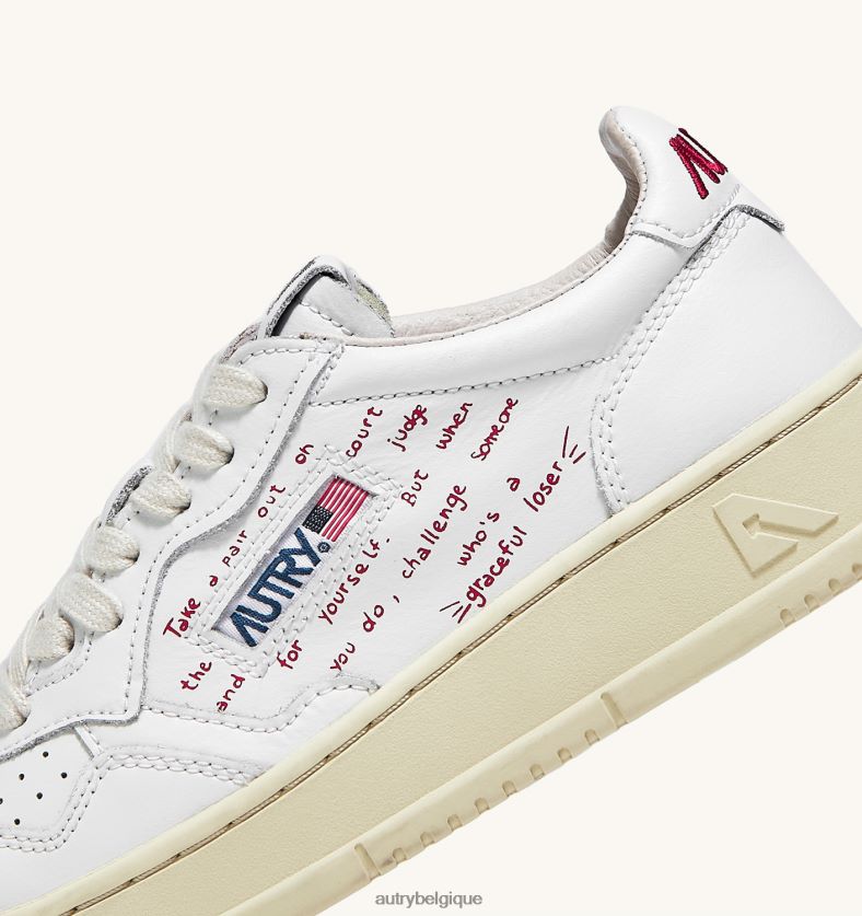 baskets basses medalist en cuir blanc avec lettrage rouge femmes belgique Autry N0XLH0168