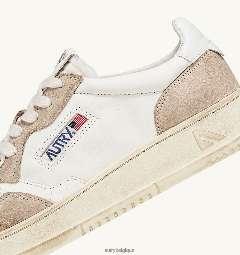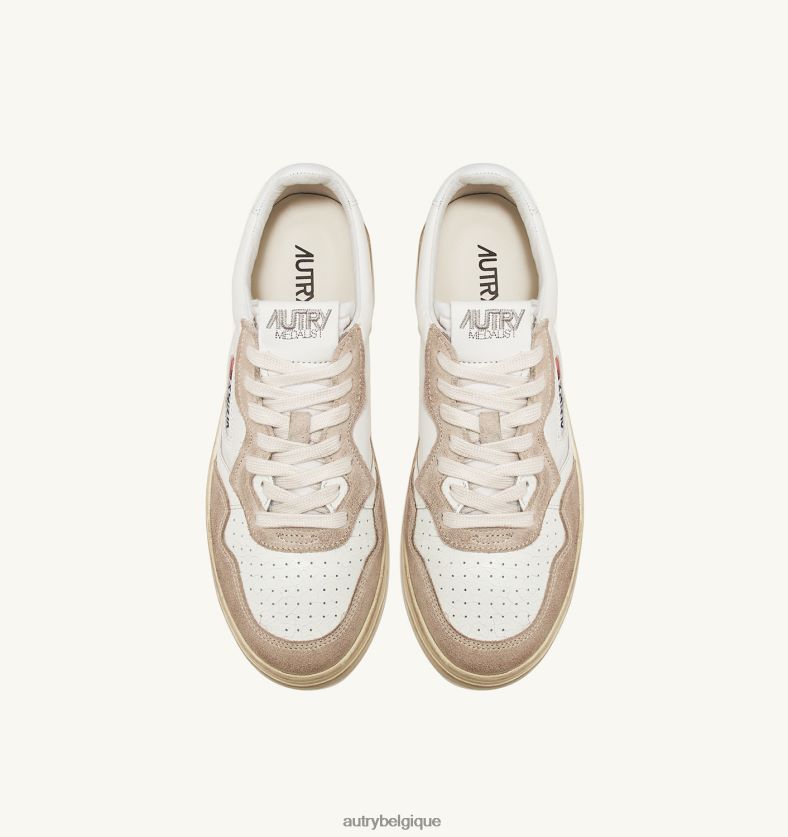 baskets basses medalist en cuir blanc et daim beige femmes belgique Autry N0XLH0207