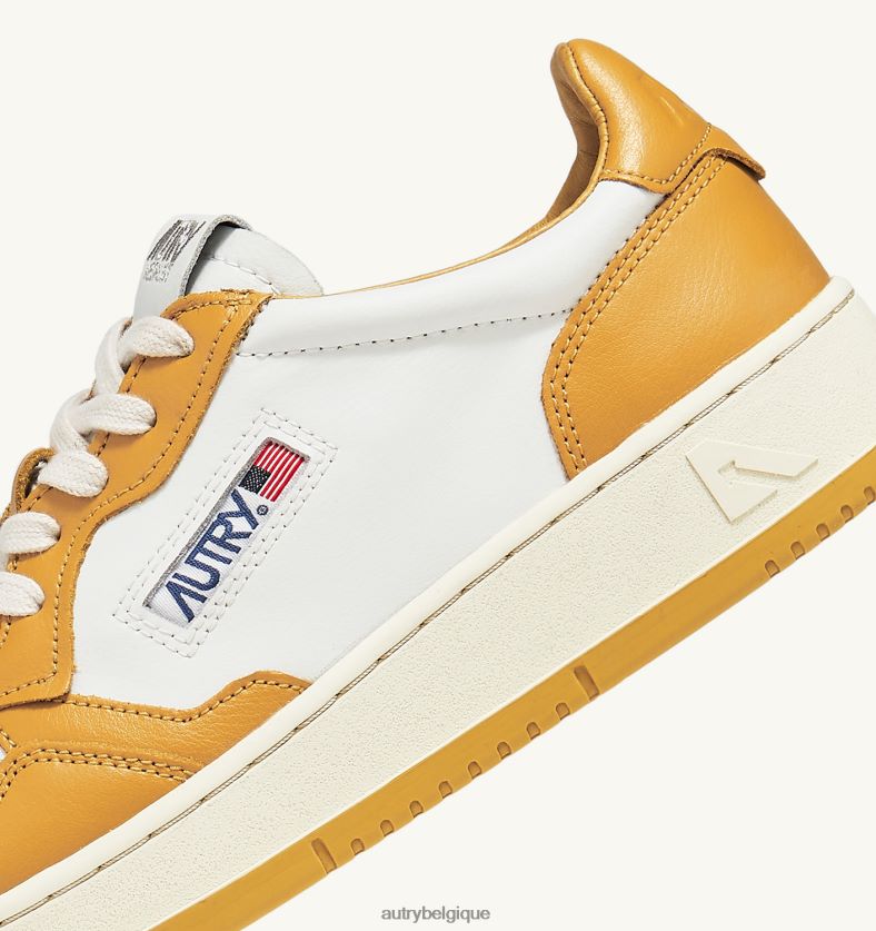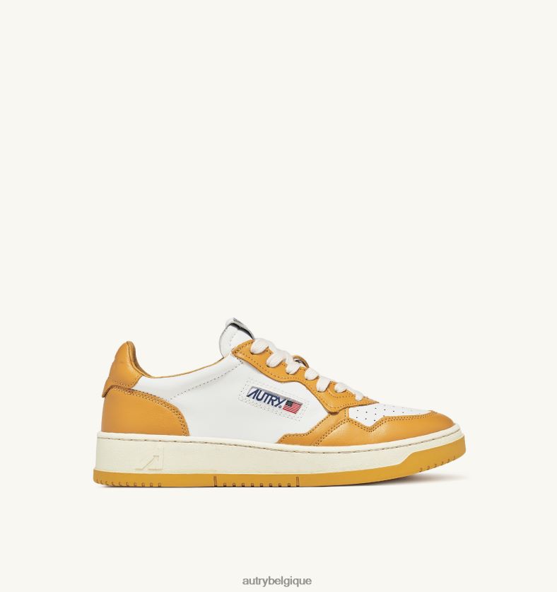 baskets basses medalist en cuir blanc et jaune Hommes belgique Autry N0XLH020