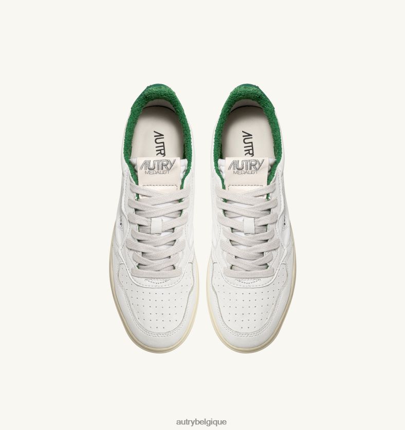 baskets basses medalist en cuir de chèvre souple et éponge blanc et vert femmes belgique Autry N0XLH0222