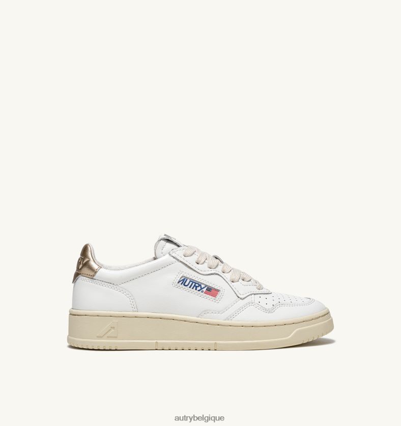 baskets basses medalist en cuir or blanc femmes belgique Autry N0XLH0163