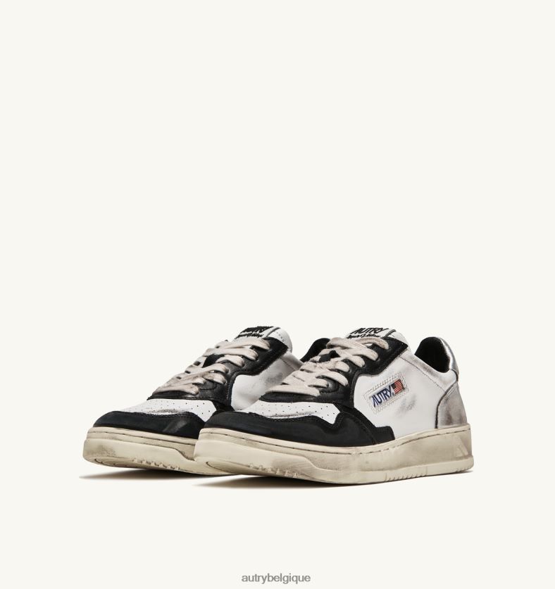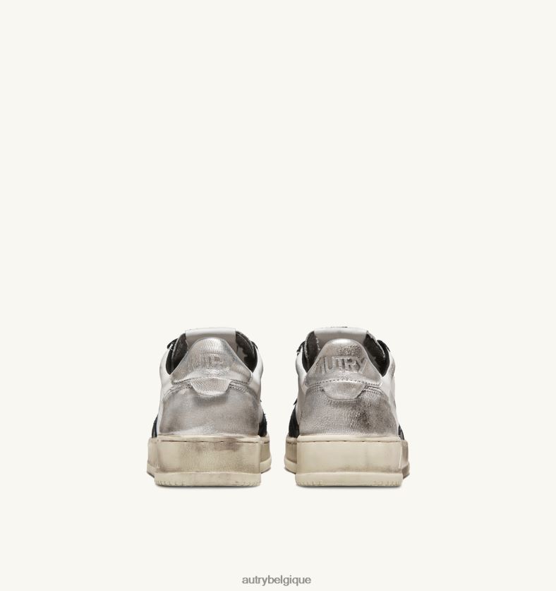 baskets basses super vintage en cuir blanc noir et argent femmes belgique Autry N0XLH0201
