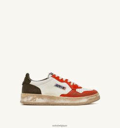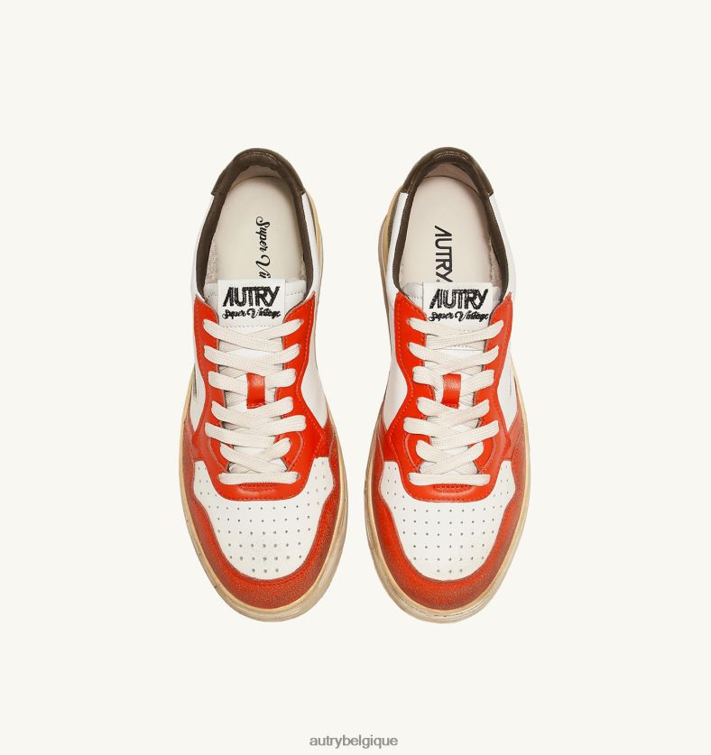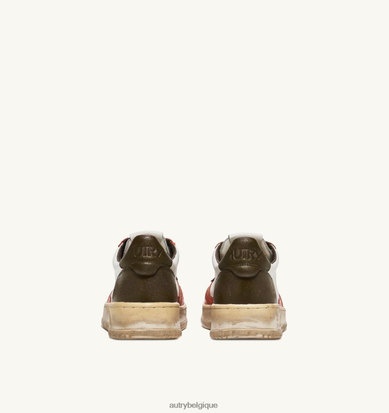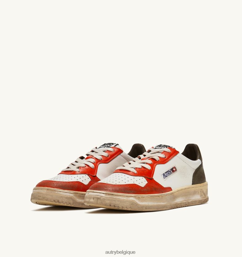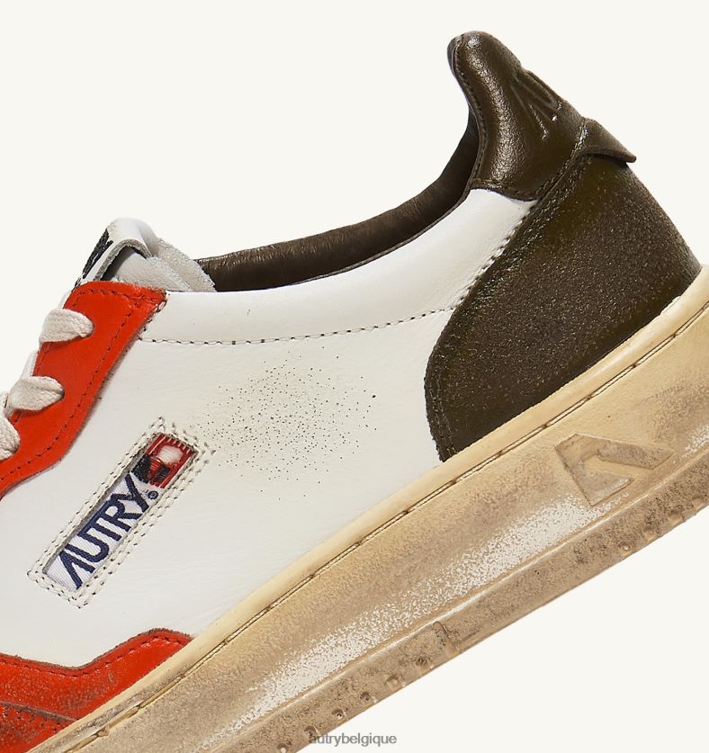 baskets basses super vintage en cuir blanc orange et ton militaire Hommes belgique Autry N0XLH032