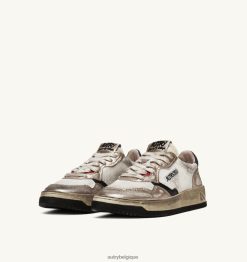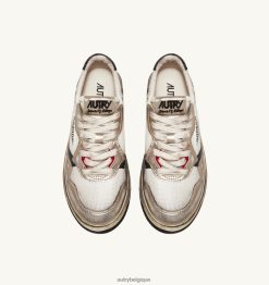 baskets basses super vintage en mesh et daim blanc et oro femmes belgique Autry N0XLH0199