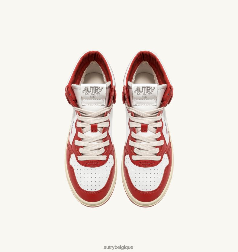 baskets bicolores medalist mid en cuir blanc et rouge femmes belgique Autry N0XLH0189
