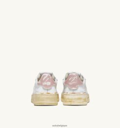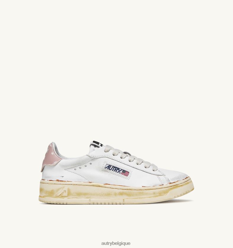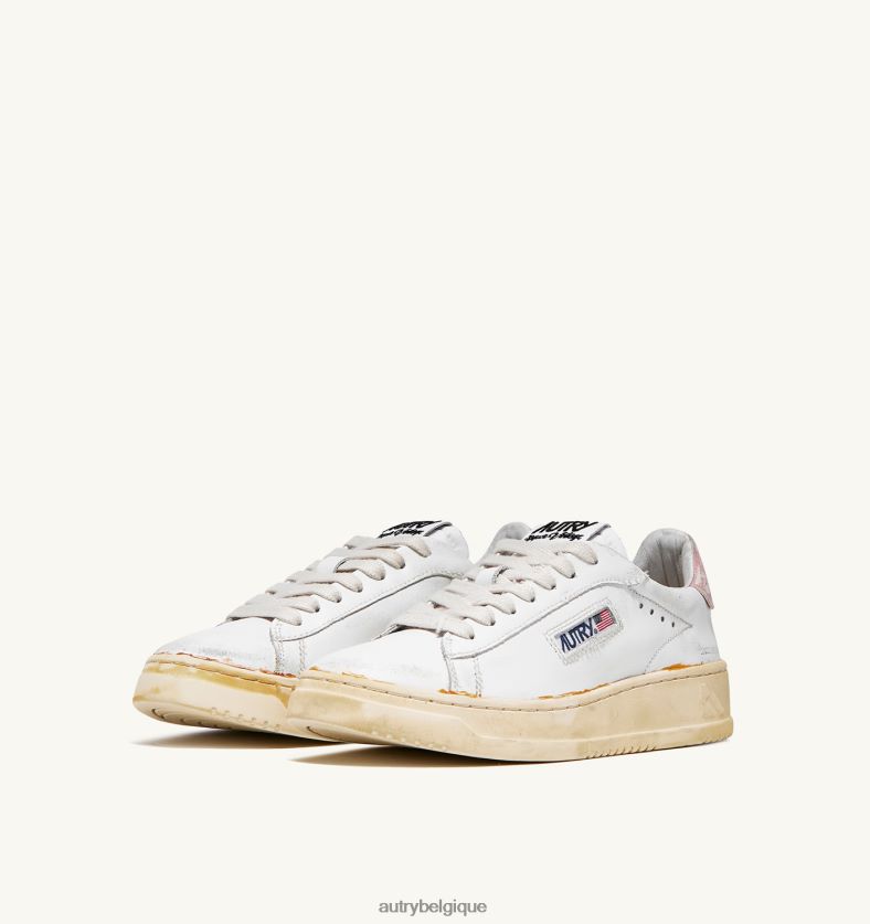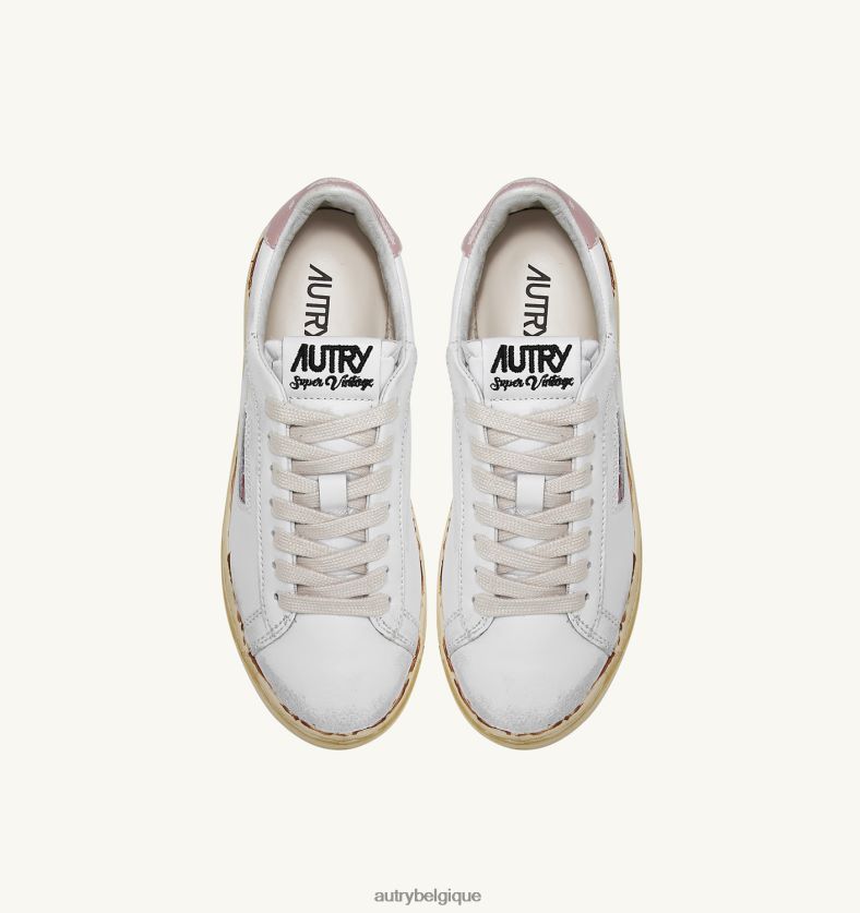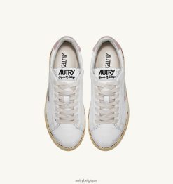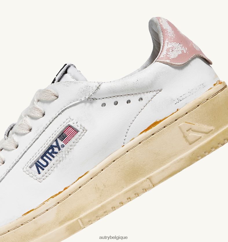 baskets dallas low vintage collés en cuir blanc et rose poudré femmes belgique Autry N0XLH0262