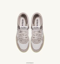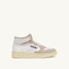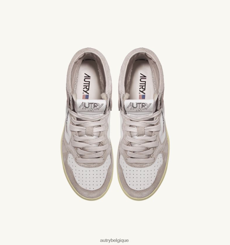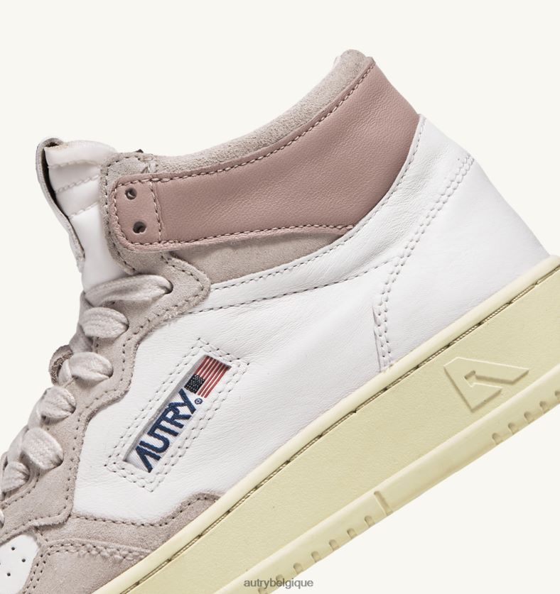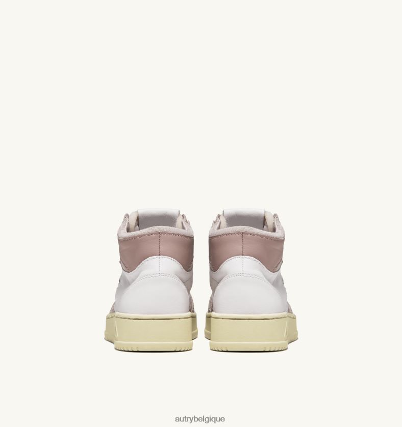 baskets medalist mid en cuir de chèvre et daim blanc et rose femmes belgique Autry N0XLH0231
