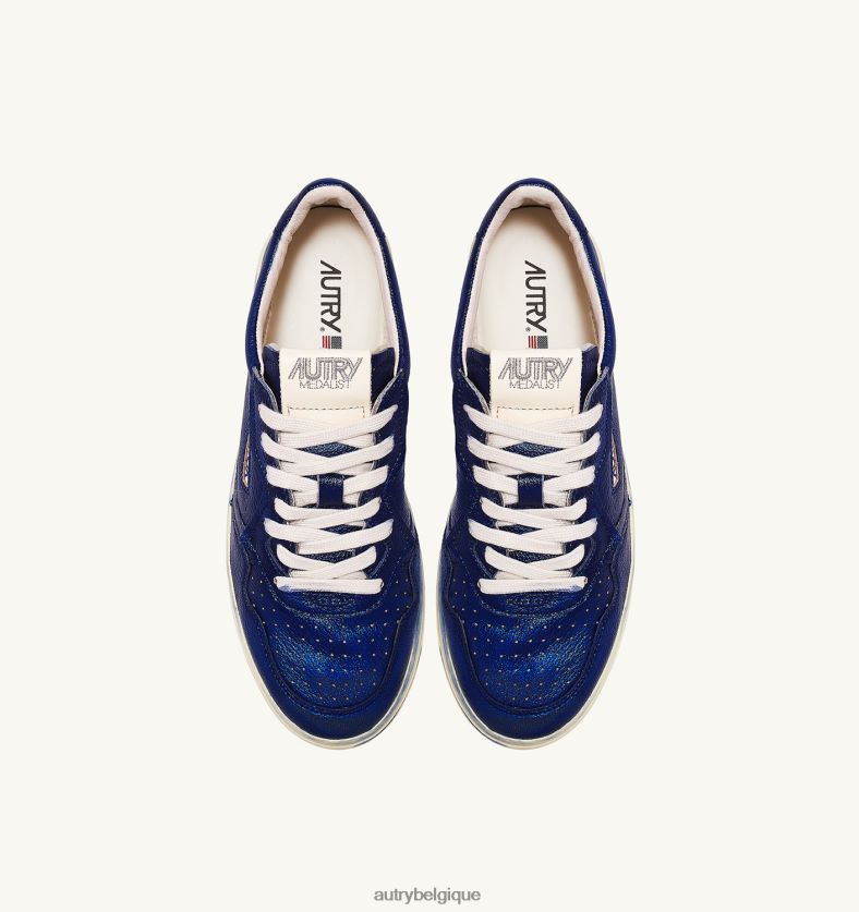 baskets medalist mid en cuir de chèvre lamé bleu femmes belgique Autry N0XLH0208