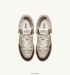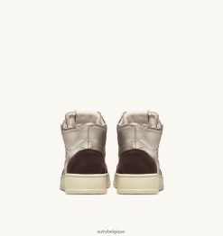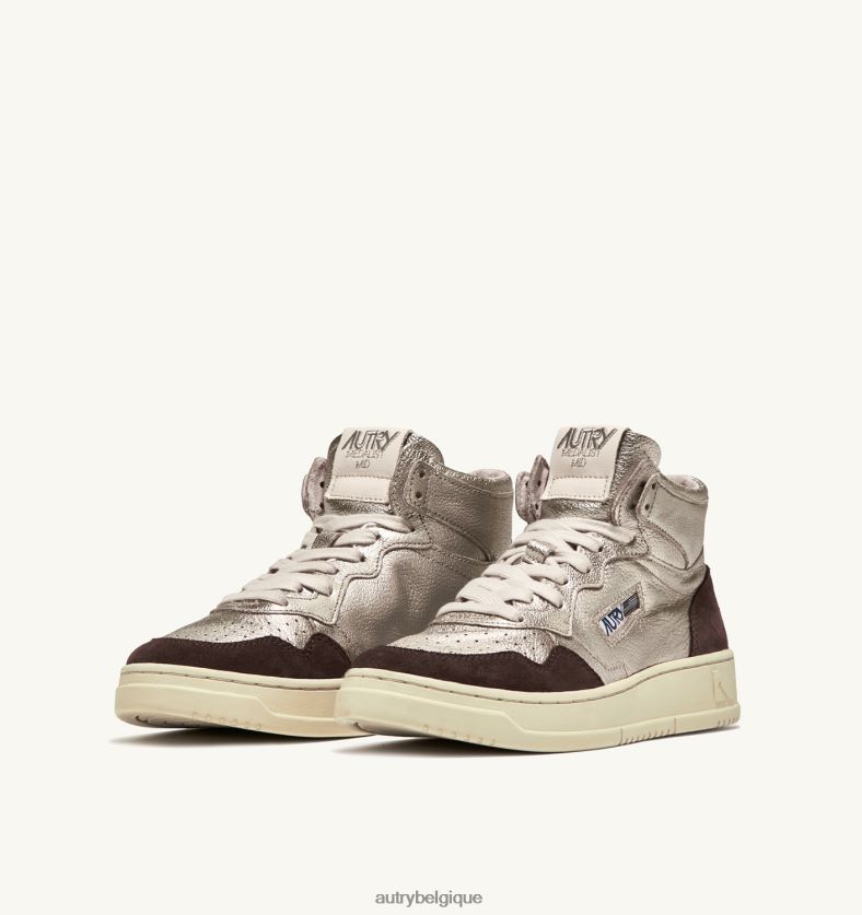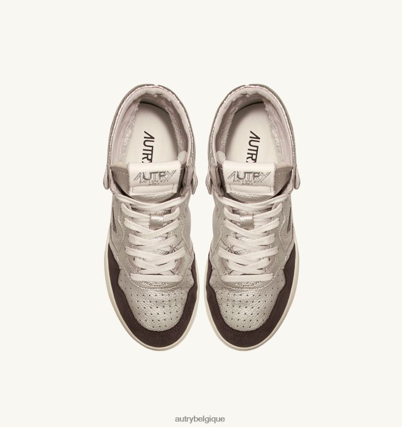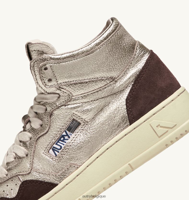 baskets medalist mid en cuir et daim platine et marron femmes belgique Autry N0XLH0235
