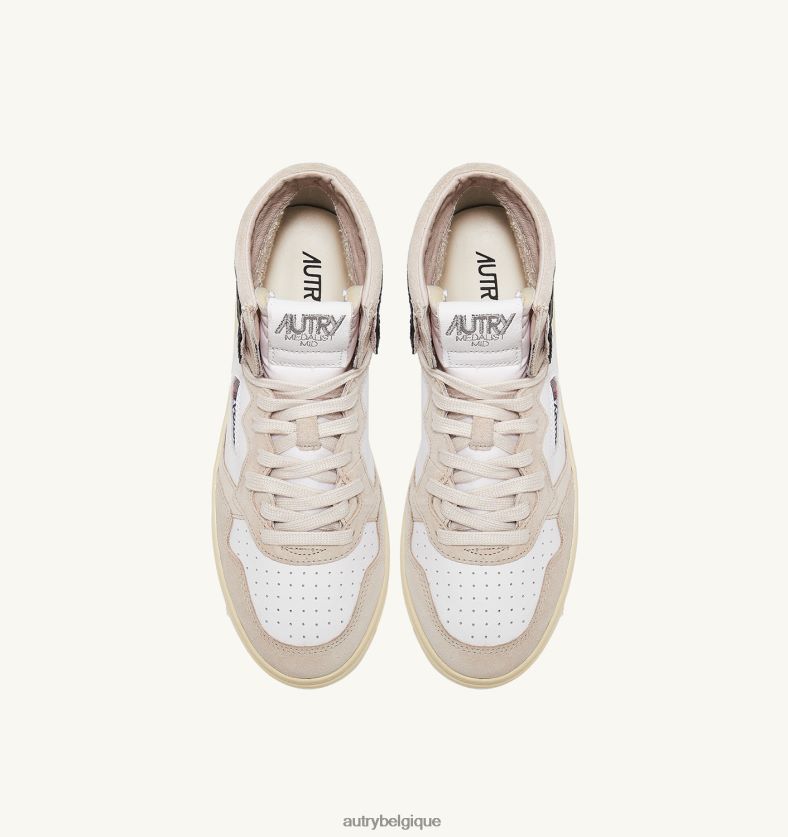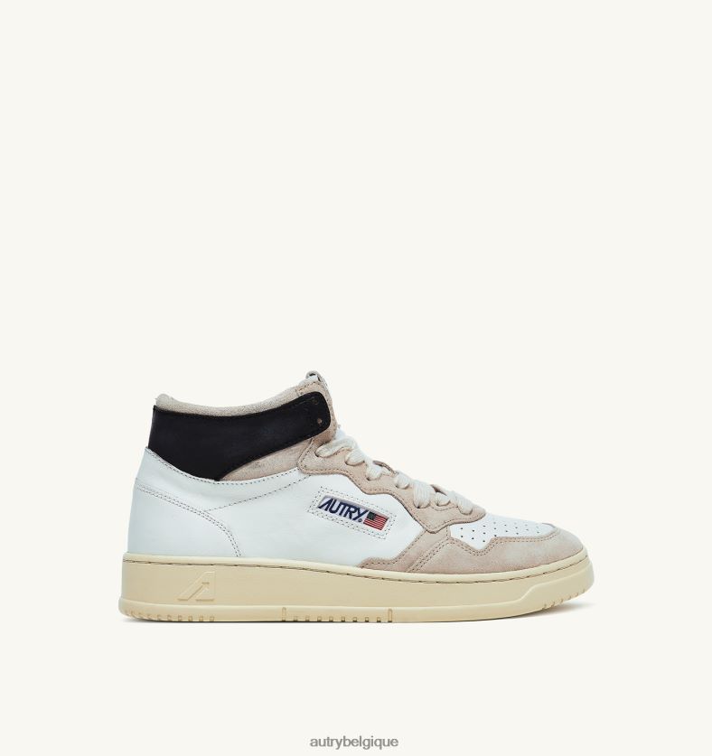 baskets medalist mid en cuir et suède blanc noir Hommes belgique Autry N0XLH037