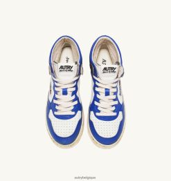 baskets super vintage mid en cuir blanc bleu et noir femmes belgique Autry N0XLH0203