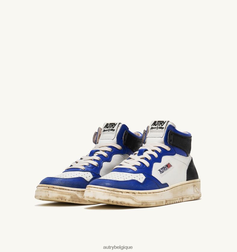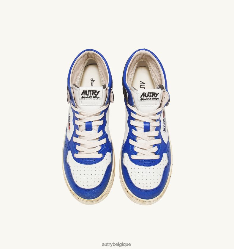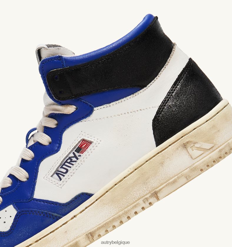 baskets super vintage mid en cuir blanc bleu et noir Hommes belgique Autry N0XLH034