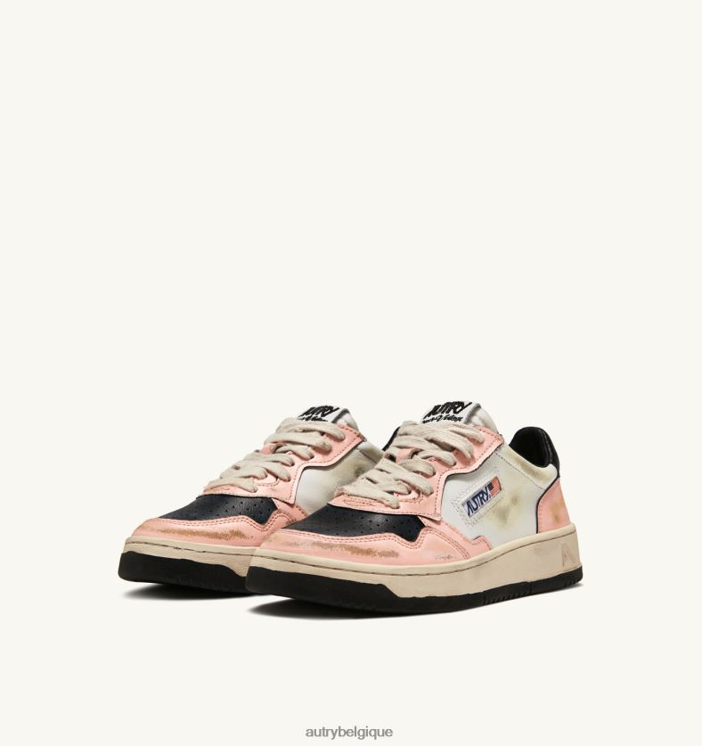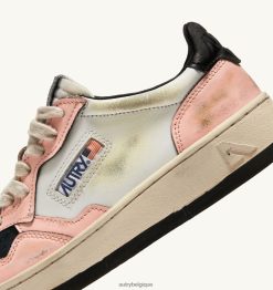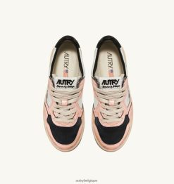 baskets super vintage mid en cuir blanc et rose femmes belgique Autry N0XLH0266