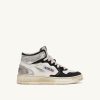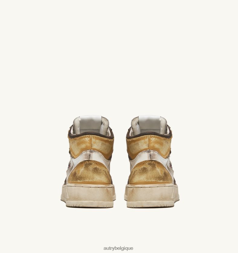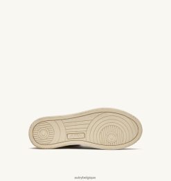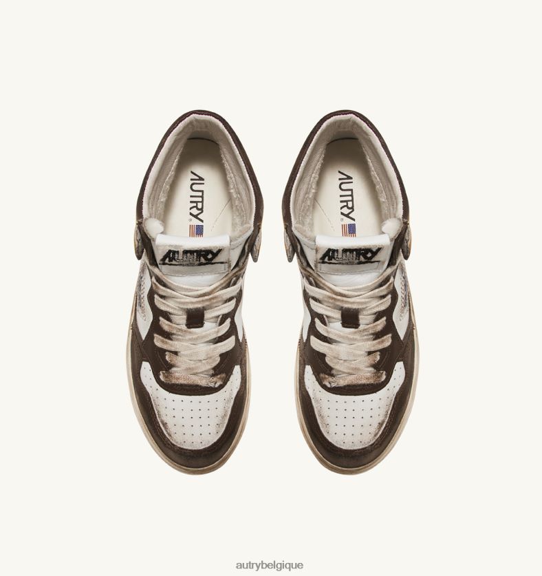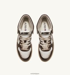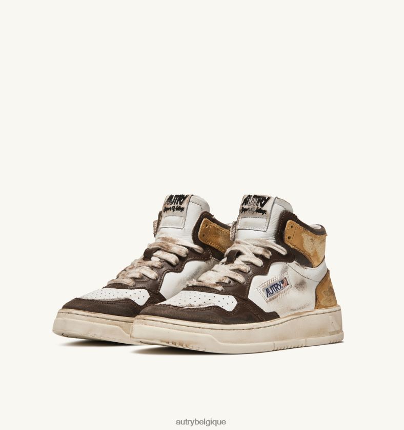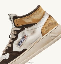 baskets super vintage mid en cuir blanc marron et miel femmes belgique Autry N0XLH0205