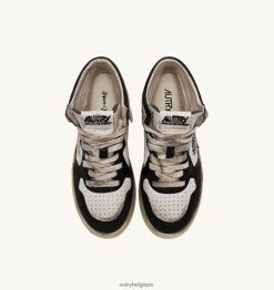 baskets super vintage mid en cuir blanc noir et argent Hommes belgique Autry N0XLH035
