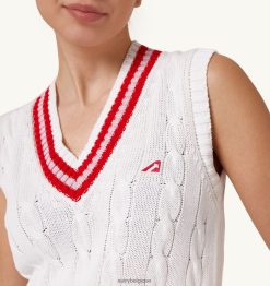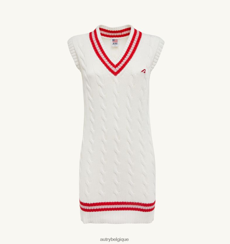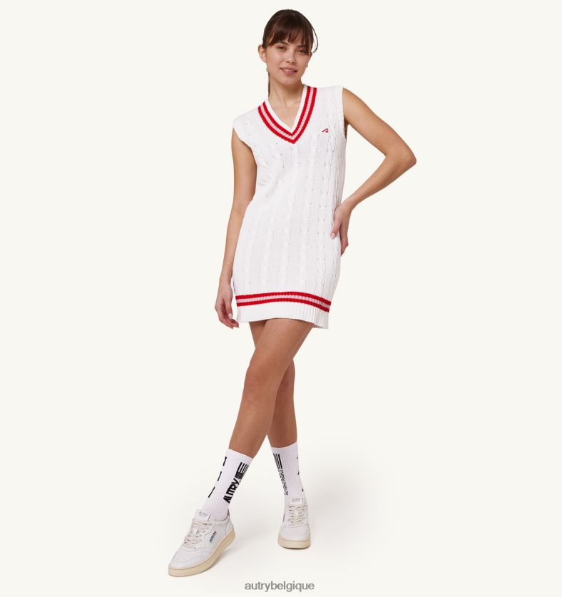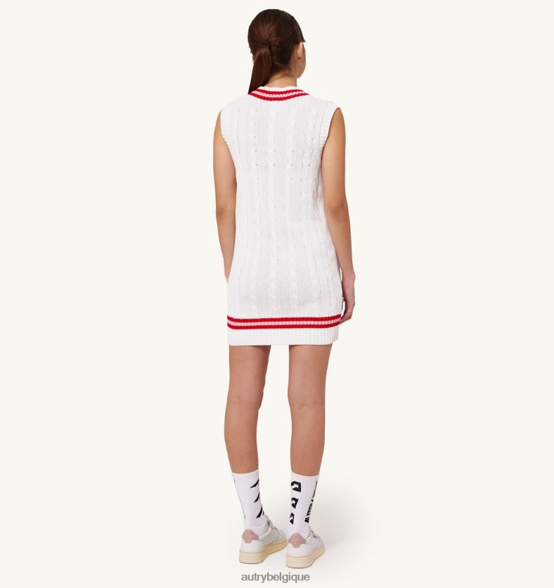 robe gilet de tennis en tricot de coton tissé spécifications : détails contrastés et encolure en V.profils en tricot à côtes moyennes et détails contrastés à l’ourlet.étiquette détaillée sur le côté.écusson logo sur la poitrine. composition coupe classique : 100 % coton