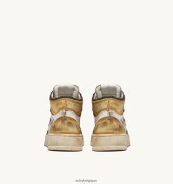 sneaker super vintage mid en cuir blanc marron et miel Hommes belgique Autry N0XLH036
