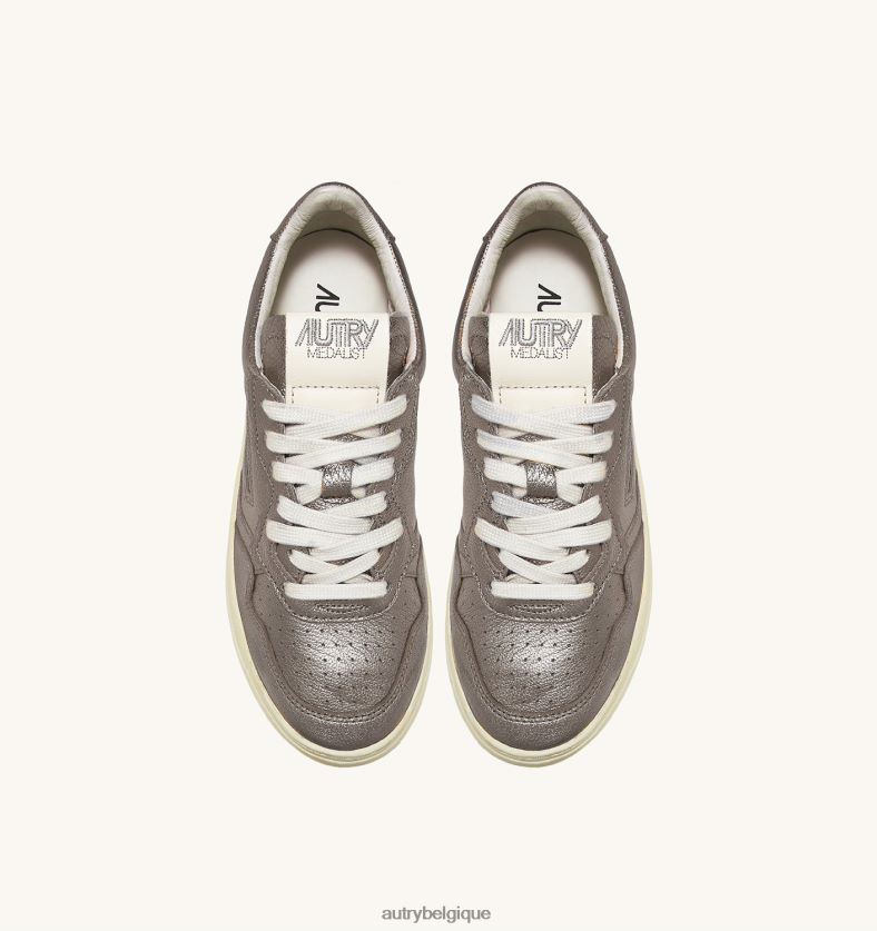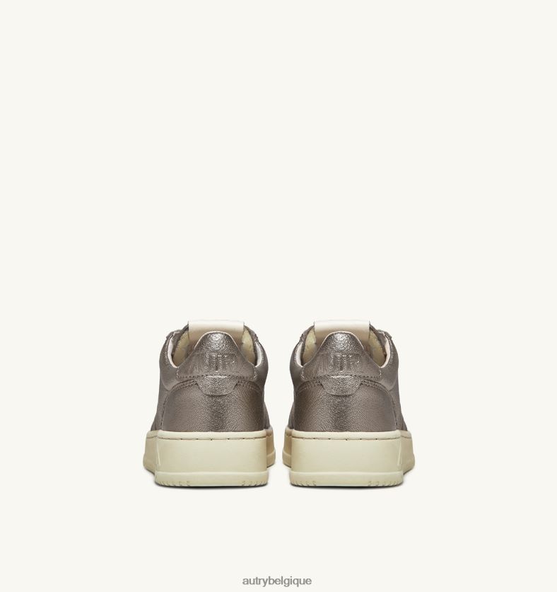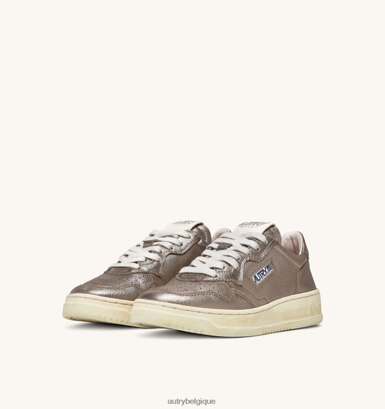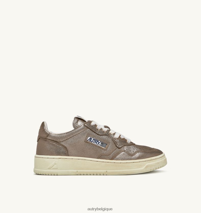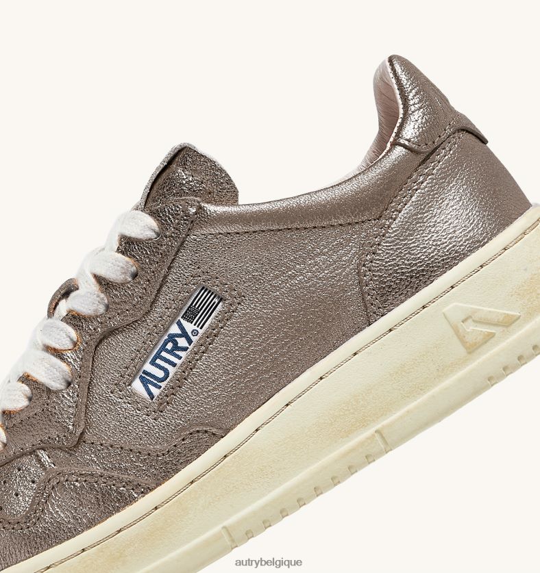 bas médaillé en cuir de chèvre laminé marron cuivré femmes belgique Autry N0XLH0197