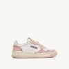baskets basses medalist bicolores en cuir de chèvre souple et toile effilochée blanc et mangue femmes belgique Autry N0XLH0240