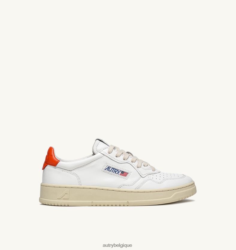 baskets basses medalist en cuir blanc et orange Hommes belgique Autry N0XLH09