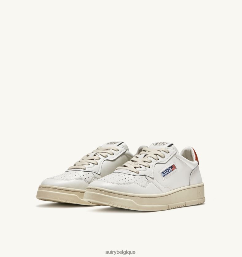 baskets basses medalist en cuir blanc et rouille Hommes belgique Autry N0XLH07