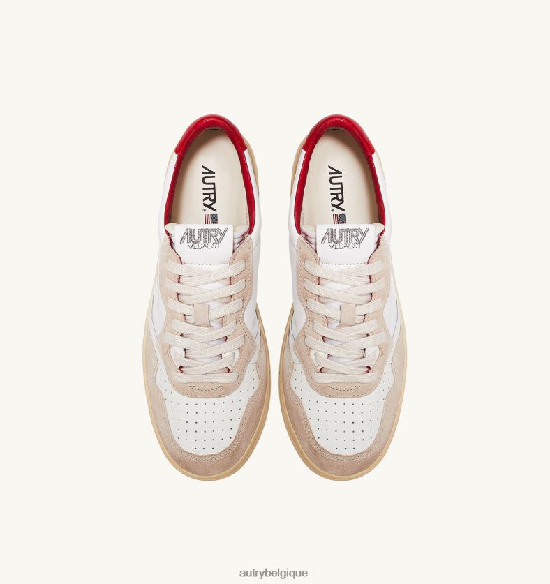 baskets basses medalist en cuir blanc rouge femmes belgique Autry N0XLH0206