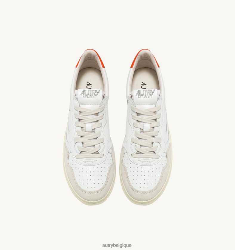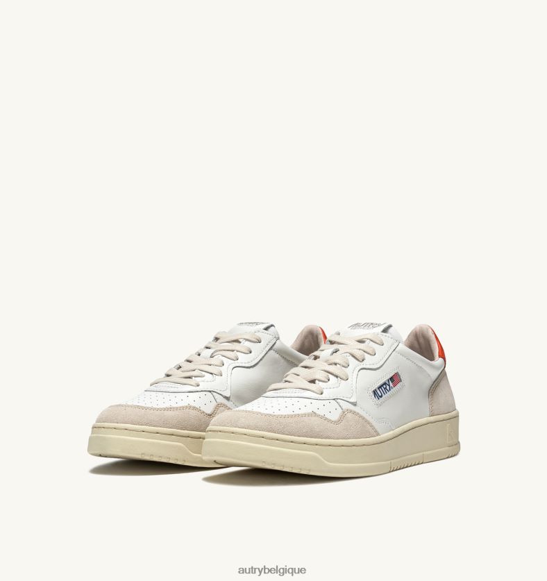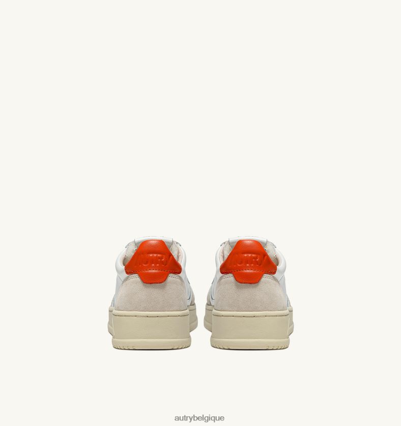 baskets basses medalist en daim et cuir blanc et orange femmes belgique Autry N0XLH0218