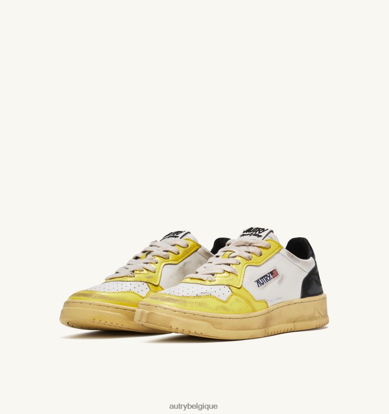 baskets basses super vintage en cuir blanc noir et jaune femmes belgique Autry N0XLH0202