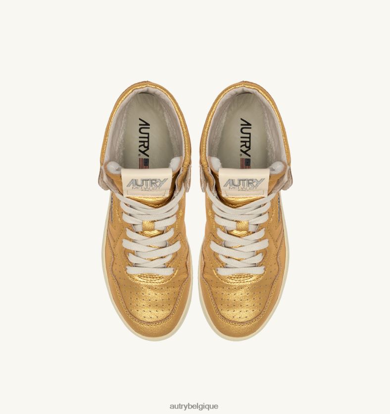 baskets medalist mid en cuir de chèvre laminé bronze femmes belgique Autry N0XLH0209