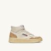 baskets super vintage mid en cuir effet jaunissant blanc et orange Hommes belgique Autry N0XLH068
