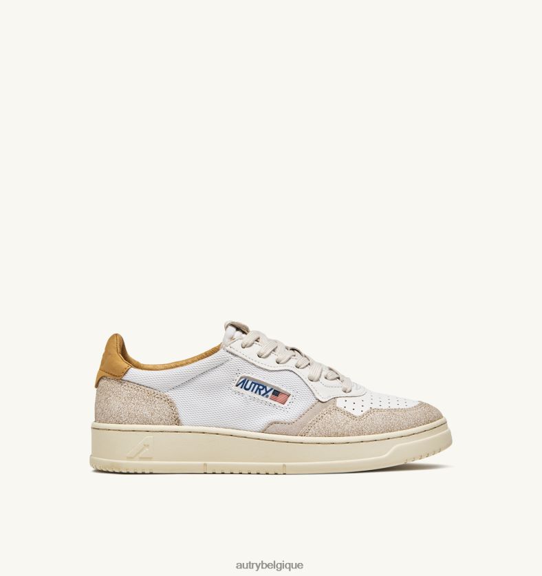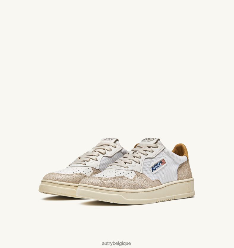 sneaker basse medalist en cuir de chèvre souple effet dragon et nubuck craquelé blanc Hommes belgique Autry N0XLH053