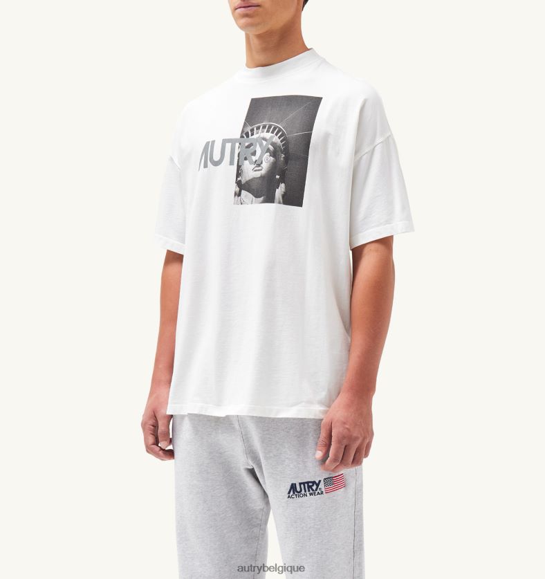 t-shirt col rond liberty photo blanc Hommes belgique Autry N0XLH0111